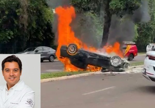 Na madrugada deste domingo (16) um carro acabou pegando fogo após um acidente no centro de Mandaguari. A ocorrência aconteceu