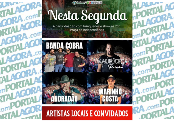 Show terá início às 21h, na Praça Independência Mandaguari recebe neste domingo (21), uma das atrações mais aguardadas da programação