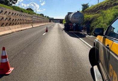 Incêndio em caminhão interdita Contorno Norte em Maringá