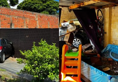 Carro atinge muro de residência em Mandaguari