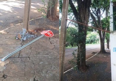 Estrutura ficou sustentada apenas por fios após motorista fugir do local Um poste localizado na Rua Padre Antônio Lock, esquina