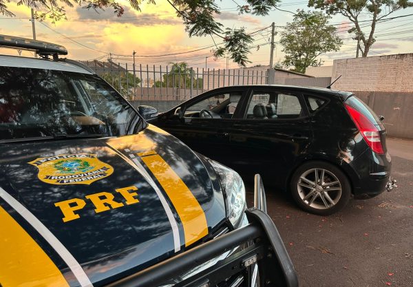 A Polícia Rodoviária Federal (PRF) recuperou um automóvel com sinais identificadores adulterados e deteve duas pessoas na tarde de sexta-feira