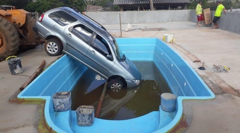 O carro foi retirado da piscina com a ajuda de uma máquina retroescavadeira. “Foi apenas o susto, o menino não se machucou e nem ficou assustado. A piscina também não teve danos maiores, apenas a borda teve uns riscos que a gente vai fazer o reparo essa semana. Ficou mais uma história para contar”, afirmou o empresário.