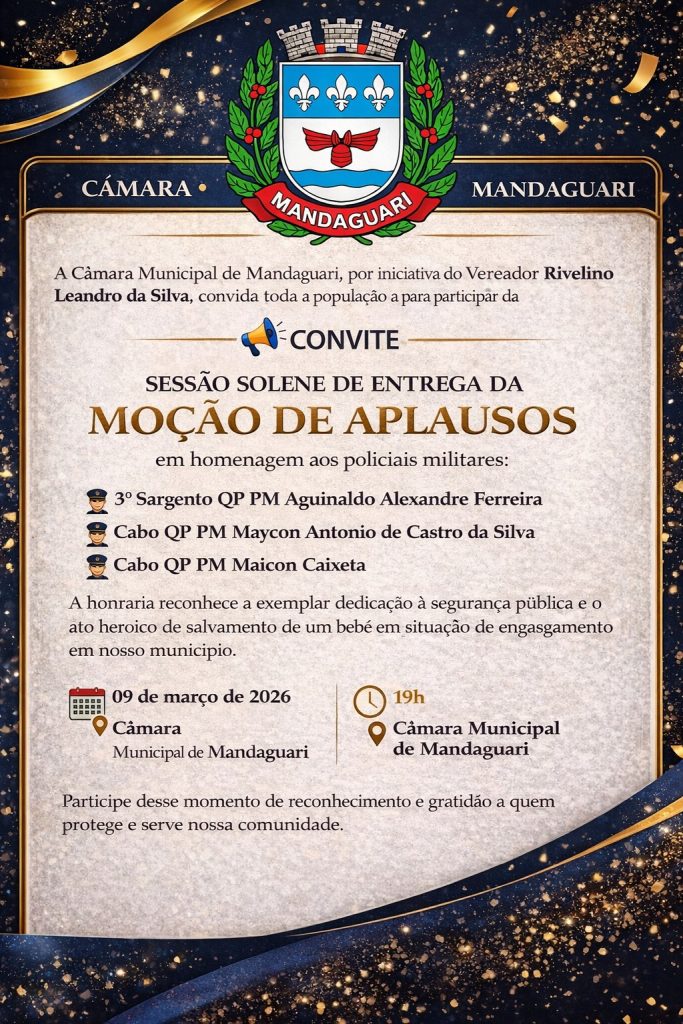 A cerimônia será realizada no plenário da Câmara Municipal de Mandaguari e é aberta à participação da comunidade. A expectativa é reunir autoridades, familiares dos homenageados e moradores do município para acompanhar o momento de reconhecimento público aos profissionais da segurança.