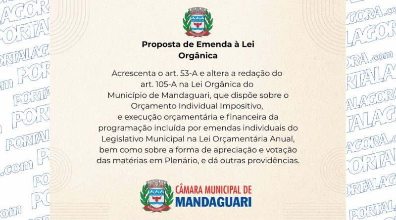 O Substitutivo acrescenta o art. 53-A e altera a redação do art. 105-A na Lei Orgânica do Município de Mandaguari, que dispõe sobre o Orçamento Individual Impositivo, e execução orçamentária e financeira da programação incluída por emendas individuais do Legislativo Municipal na Lei Orçamentária Anual, bem como sobre a forma de apreciação e votação das matérias em Plenário, e dá outras providências.