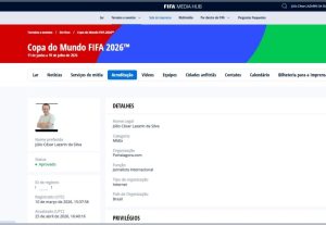 O jornalista Júlio César Raspinha recebeu nesta segunda-feira (27) a autorização oficial para atuar como jornalista credenciado junto à Confederação Brasileira de Futebol (CBF) e à FIFA, garantindo acesso aos principais ambientes da competição.