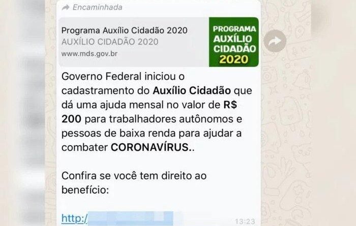 É falso cadastro por WhatsApp do benefício Auxílio Cidadão de R$ 200