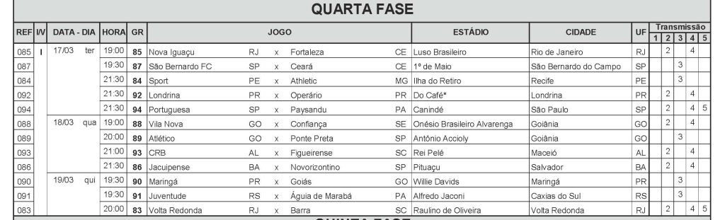 A Confederação Brasileira de Futebol divulgou na tarde desta sexta-feira (13) a tabela detalhada da próxima etapa da Copa do Brasil.