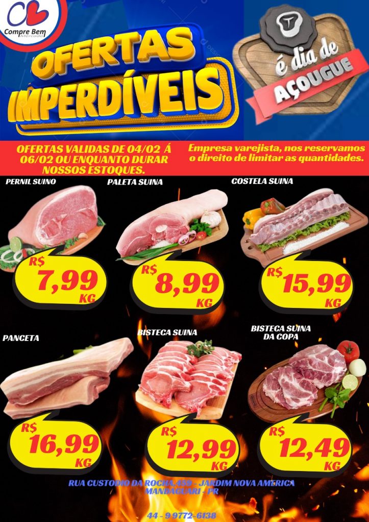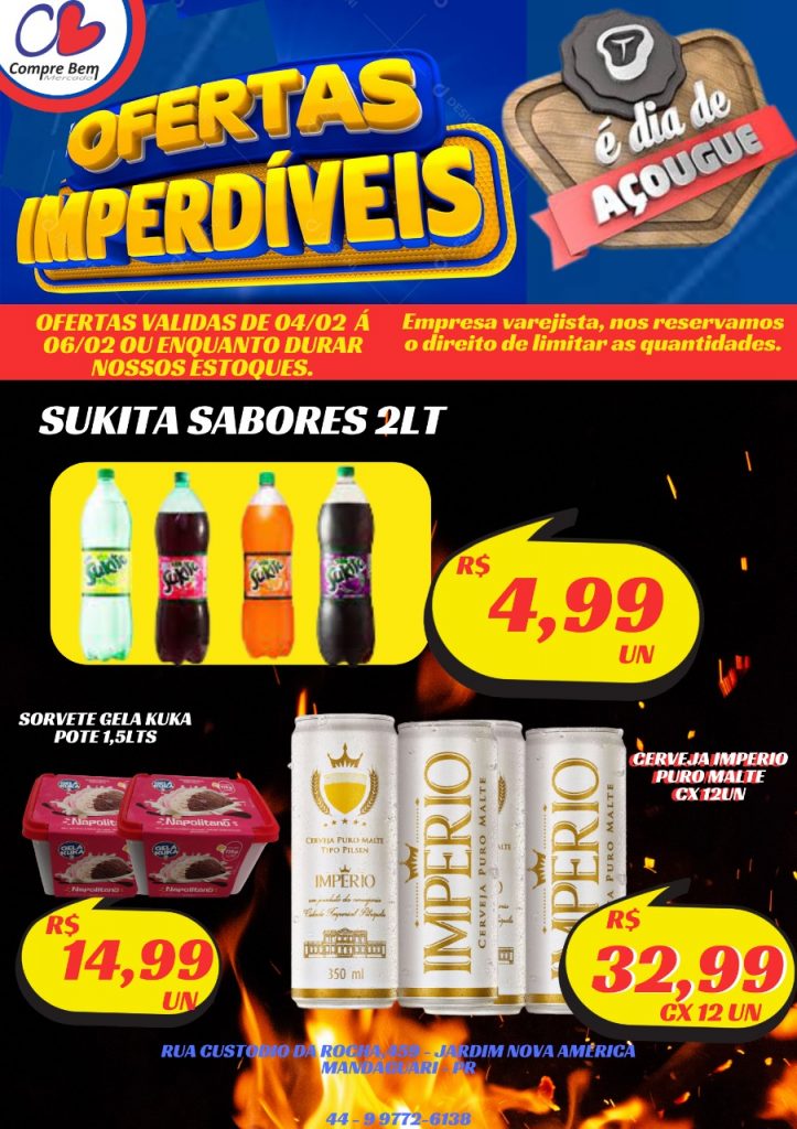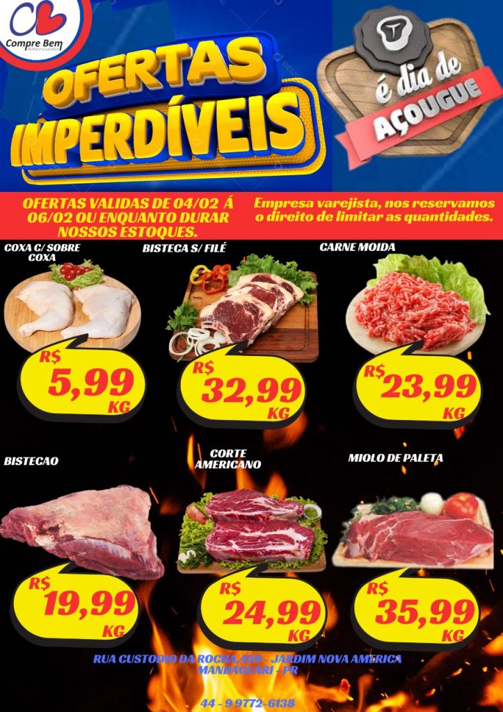 Corre já fazer as suas compras no Mercado Compre Bem, pois estas ofertas estão valendo por tempo limitado, somente até o dia 6/2!