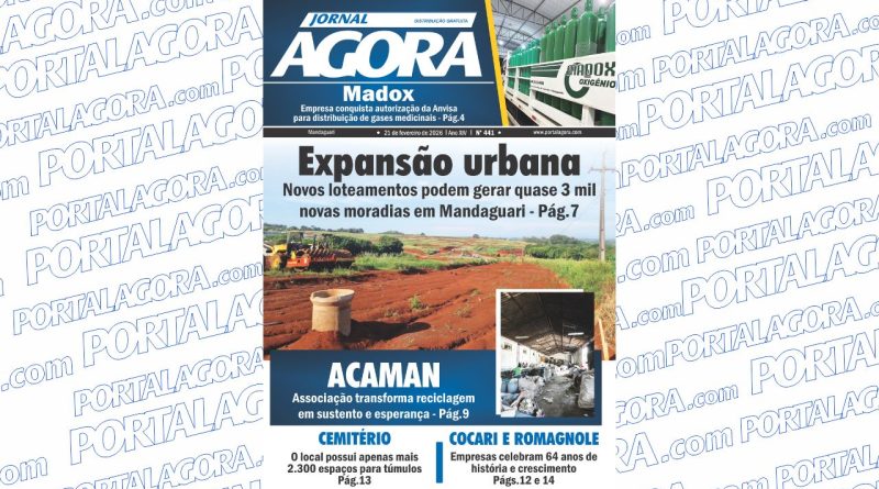 O Jornal Agora circula neste sábado (21) com a edição n°441. A nova edição destaca assuntos ligados à expansão urbana, cemitério, Acaman, Cocari e Romagnole.
