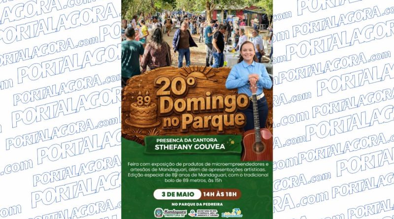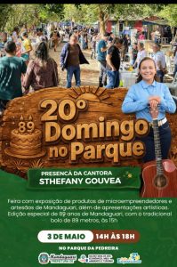 No dia 3 de maio irá acontecer a 20ª edição do evento Domingo no Parque em Mandaguari. Será uma edição especial do aniversário de 89 anos da cidade, com o tradicional bolo de 89 metros às 15h.