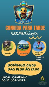 A APIDAE, Clube de Aventureiros de Mandaguari, com apoio da Igreja Adventista do Sétimo Dia, irá realizar uma tarde recreativa para as crianças neste domingo (1°).