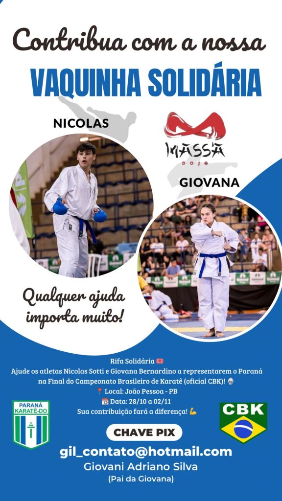 Dois jovens atletas de Mandaguari estão prestes a representar o município na fase final do Campeonato Brasileiro de Karatê, que será realizado entre os dias 28 de outubro e 2 de novembro, em João Pessoa, na Paraíba. Os competidores, Giovanna Eduarda Bernardino da Silva, de 13 anos, e Nicolas Gabriel Sotti, de 15, conquistaram a classificação após participarem da etapa realizada em Londrina, representando a Associação Massa Dojo, sob orientação do sensei Roberto Massahiro.