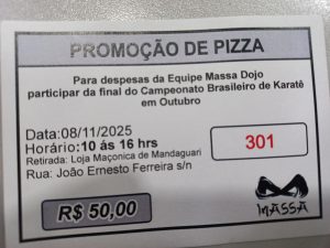 Além da campanha de arrecadação por meio de PIX, os atletas também estão promovendo a venda de pizzas para ajudar nas despesas da viagem. A promoção acontecerá no dia 8 de novembro, das 10h às 16h, com retirada na Loja Maçônica de Mandaguari, localizada na Rua João Ernesto Ferreira, ao preço de R$ 50,00 cada.