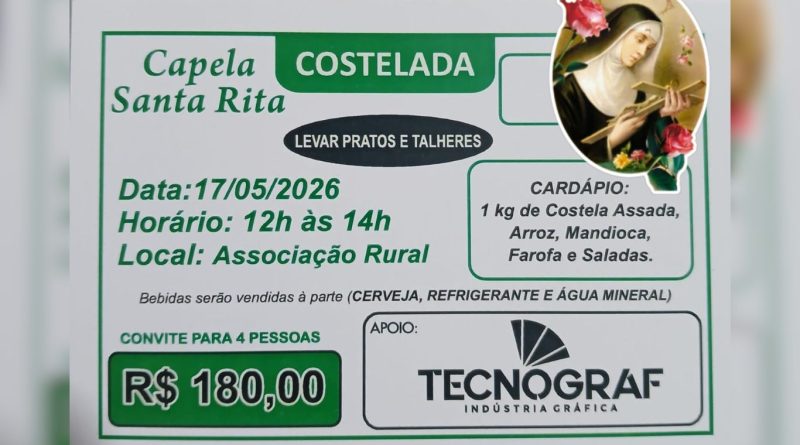 A comunidade Santa Rita de Cássia está promovendo uma costelada em prol da capela.