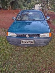 O veículo é um modelo Gol na cor azul com a placa AIW-4094.