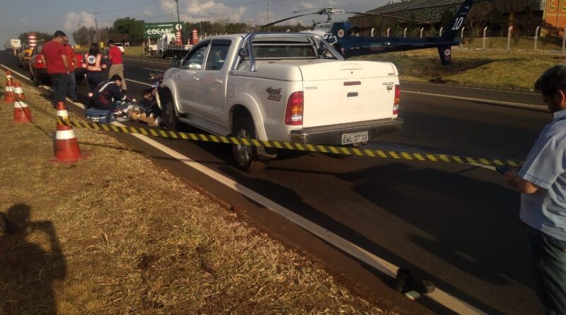 O morador estava de bicicleta e fazia a travessia da pista quando foi atingido por uma Toyota Hilux com placa de Jarinu (SP) que seguia sentido Mandaguari.