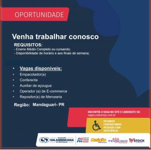 O supermercado Cidade Canção de Mandaguari está com oportunidades de emprego em aberto.
