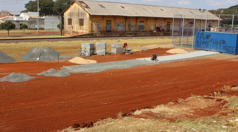 A Secretaria de Obras está trabalhando no calçamento do Complexo Esportivo (antigo terminal ferroviário) que será totalmente estruturado para o uso da população, com equipamentos esportivos, banheiros e vestiários, playground, pista de caminhada, quiosques e bancos integrados com jardim ornamentado.