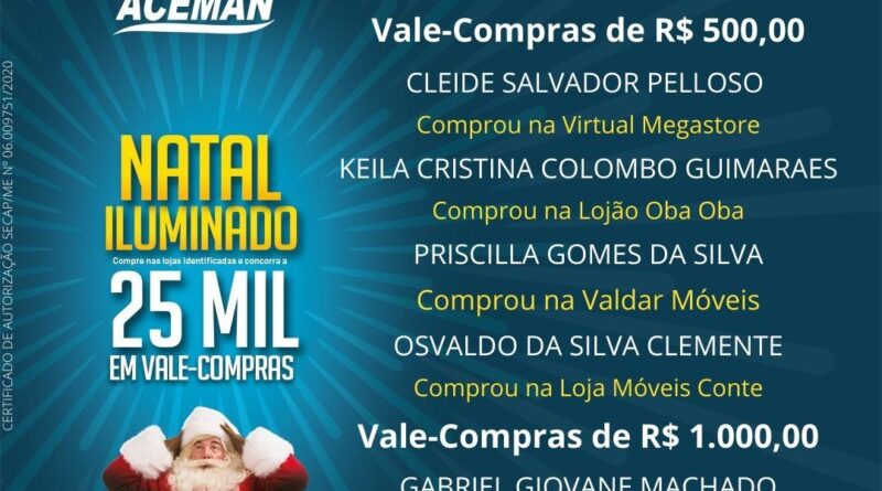 Confira os ganhadores do 2º Sorteio da Promoção Natal Iluminado.