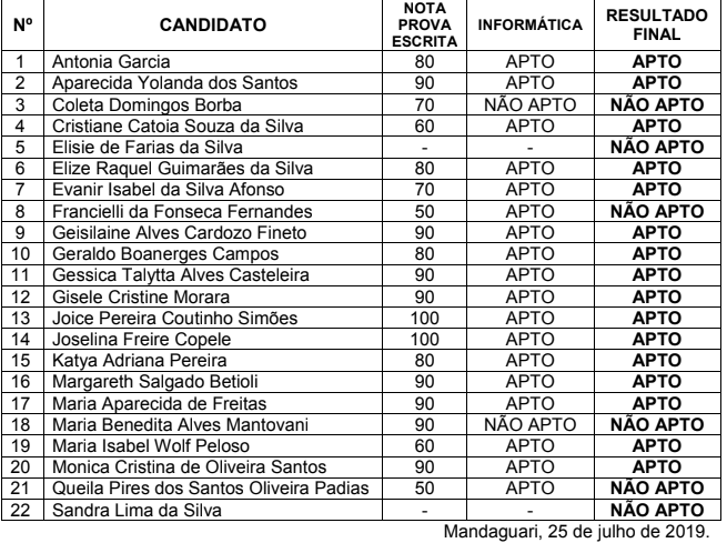 A presidente do Conselho Municipal dos Direitos da Criança e do Adolescente de Mandaguari (CMDCA), Samantha Terra Fascio, divulga o resultado da prova prática de conhecimentos básicos de informática, prova escrita e nominata dos candidatos aptos e não aptos para concorrer a eleição do Conselho Tutelar.