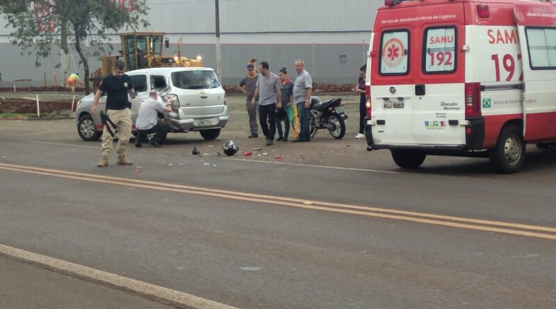 Corpo de Bombeiros, Samu e Polícia Rodoviária Federal (PRF) enviaram equipes ao local. A batida resultou em danos a ambos os veículos e ferimentos aos ocupantes da moto. A passageira foi levada ao Pronto Atendimento Municipal, e o condutor encaminhado a um hospital de Maringá.