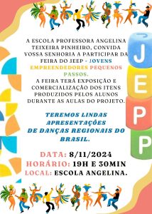 A Feira do JEEP é um dos projetos educacionais da escola que visa introduzir os jovens ao mundo do empreendedorismo, fomentando habilidades como planejamento, produção e negociação. Os alunos, sob orientação dos professores, podem explorar suas capacidades criativas e produtivas, resultando em itens que estarão disponíveis para o público durante o evento.