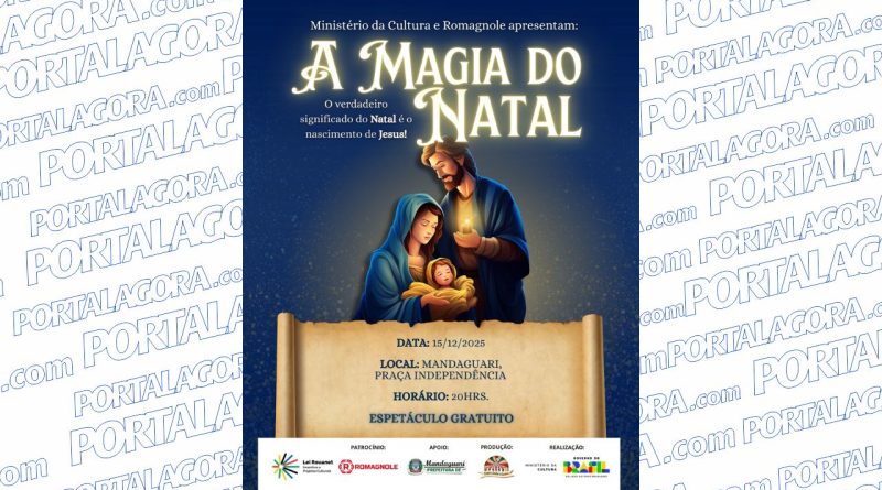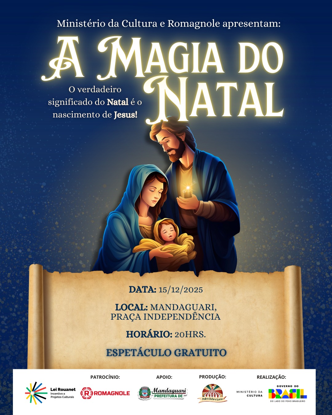 O projeto “A Magia do Natal”, patrocinado pela Romagnole, por meio da Lei Federal de Incentivo à Cultura e realizado com apoio da Prefeitura de Mandaguari, apresentará o espetáculo “Auto de Natal” na cidade.