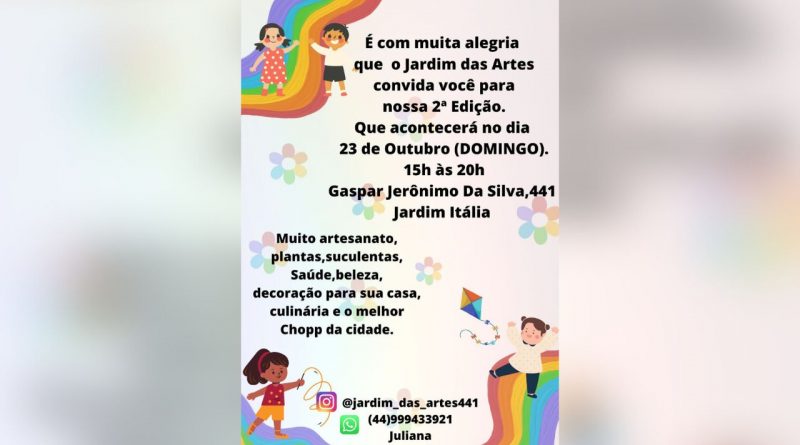 Vem aí a segunda edição da feira “Jardim das Artes”, em Mandaguari. A ação procura reunir as mulheres empoderadas e empreendedoras de Mandaguari e região, e valorizar seu trabalho.