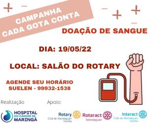 O Hospital do Câncer de Maringá, com apoio do Rotaract, Rotary e Interact Club de Mandaguari, promove mais uma rodada de doação de sangue, como parte da iniciativa “Cada gota conta”.