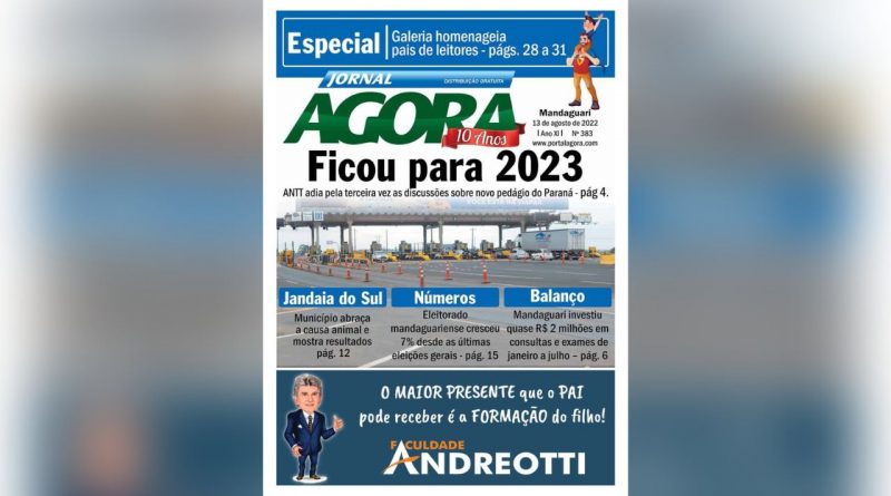 O Jornal Agora circula neste sábado (13) sua 383ª edição. O impresso traz um especial sobre o Dia dos Pais, e muitas outras reportagens.