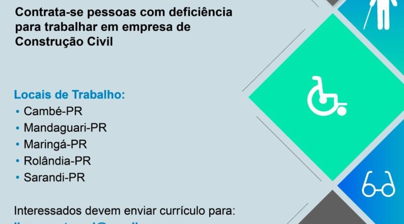 As vagas são para Cambé, Mandaguari, Maringá, Rolândia e Sarandi.