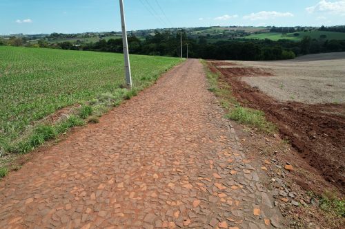 A obra contempla 1 km de pavimentação em pedra poliédrica, com investimento de R$ 342 mil, em trecho da Estrada Perobinha.