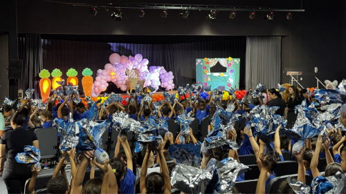 A programação aconteceu no Centro de Convenções e seguiu até ontem (1º), conforme organização da Secretaria Municipal de Educação. Antes da entrega dos ovos, os alunos assistiram ao teatro “A verdadeira Páscoa de Aninha e Duda”, que transmitiram de forma lúdica valores e o significado da data.
