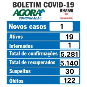 Agora são 19 casos ativos, 30 casos suspeitos ou em investigação e 1 pessoa internada na cidade.