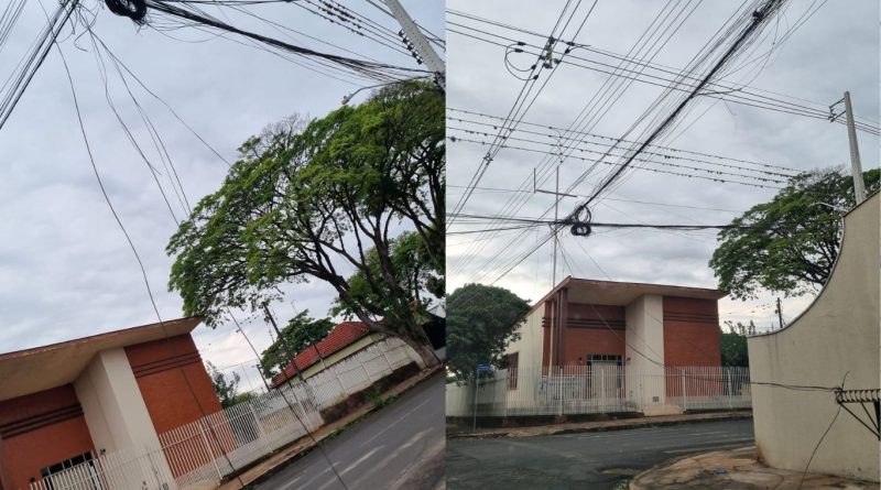 Moradores reclamam de fios soltos no centro de Mandaguari