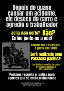 Os motoboys afirmam que o ato busca chamar atenção para a segurança e o respeito no trânsito, além de cobrar providências diante da situação.