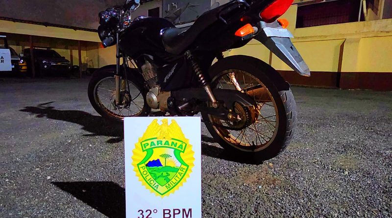 Uma motocicleta foi apreendida pela Polícia Militar de Mandaguari na noite desta terça-feira (21), durante patrulhamento de rotina realizado no Jardim Boa Vista. A ação foi conduzida pela equipe de Rondas Preventivas com Apoio de Motocicletas (RPA), composta pelo 1º sargento Andrade e pelo soldado Lucas.