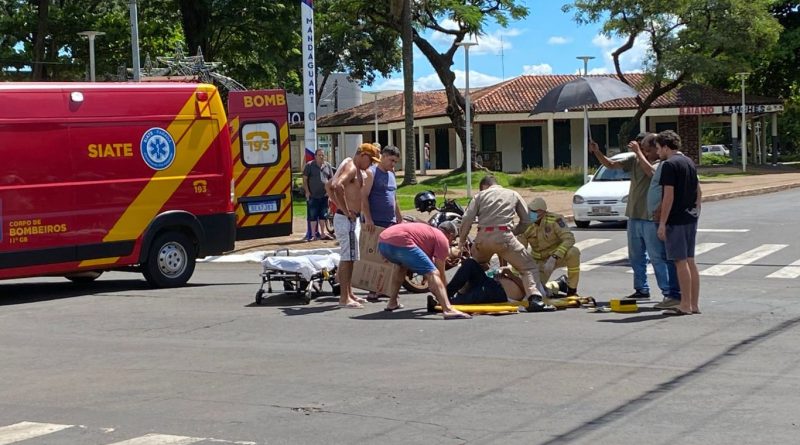 Motociclista fica ferido em acidente no cruzamento da Avenida Amazonas
