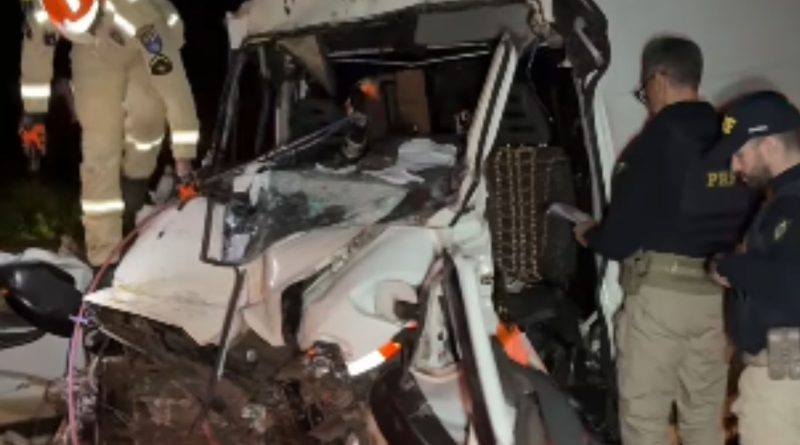 Mulher fica presa às ferragens após van bater na traseira de caminhão na BR-376 em Mandaguari