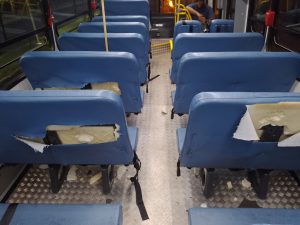 Conforme apurado pelo Portal Agora, junto ao transporte escolar, o ato de vandalismo aconteceu na segunda-feira (27) no período da tarde com alunos da rede estadual de ensino. Ainda segundo o responsável pelo transporte, Edson Fineto, foram danificados quase todos os bancos dos ônibus, e que não tem condições, dos veículos que são novos, rodar.
