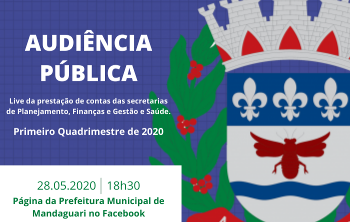 O secretário de Planejamento, Finanças e Gestão, Hamilton Sampaio e a secretária de Saúde, Deise Vernillo, farão nesta quinta-feira, dia 28 de maio, às 18h30, Audiência Pública através de LIVE que será transmitida pelo Facebook, na página da Prefeitura Municipal de Mandaguari.