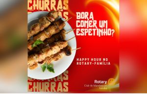 O Rotary Club de Mandaguari-Família realiza um Happy Hour especial com espetinhos e música ao vivo na sexta-feira, 24 de outubro, das 17h às 22h, na sede do clube, localizada na Rua Zacarias de Vasconcelos, 366 – Jardim Bela Vista.