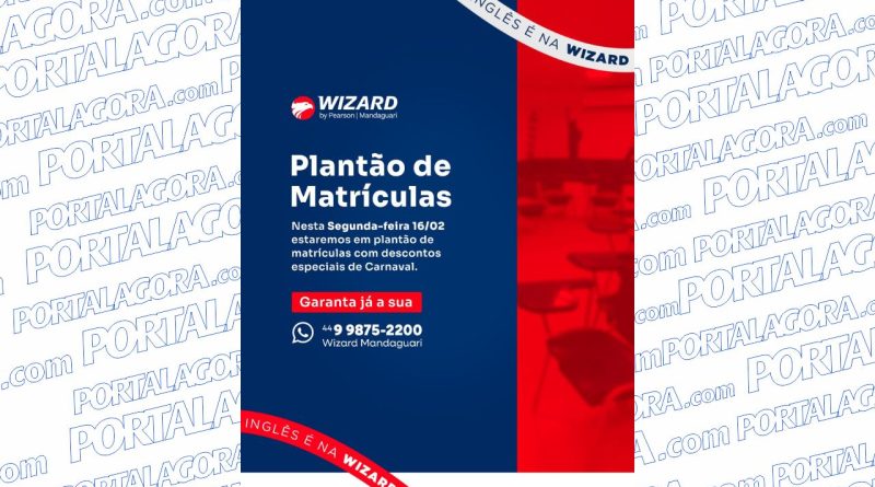 A Wizard de Mandaguari está com seu plantão de matrículas nesta segunda-feira (16) com descontos especiais de Carnaval!