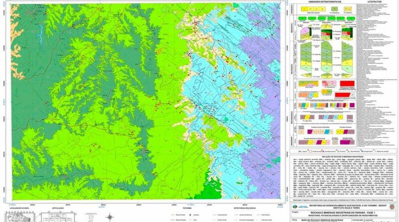 O Governo do Estado disponibilizou 21 cartas na escala 1:250.000, mostrando ocorrências, indícios e minas ativas e inativas conhecidas de rochas e minerais industriais extensivas a todo o Paraná. Os estudos são do Instituto Água e Terra (IAT), vinculado à Secretaria do Desenvolvimento Sustentável e do Turismo.