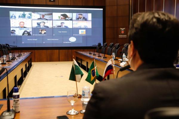 PRESENÇAS – Participaram do encontro o vice-governador Darci Piana; o chefe da Casa Civil Guto Silva; o secretário de Estado da Saúde, Beto Preto; o chefe do Escritório de Representação do Paraná em Brasília, Rubens Bueno II; o vice-presidente do Fundo de Investimento Direto da Rússia, Tagir Sitdekov; Luis Paulo Gomes Mascarenhas, da diretoria de Relações Internacionais da Superintendência Geral de Ciência, Tecnologia e Ensino Superior; Acef Said, cônsul honorário da Rússia no Paraná; Marcos Schettino, presidente da sociedade do corpo consular do Paraná; Flávio Werneck, assessor especial para Assuntos Internacionais do Ministério da Saúde; Ana Paula Barreto, representante da Secretaria de Ciência, Tecnologia e Insumos Estratégicos do Ministério da Saúde; Priscila Souza, coordenadora-geral de Ações Estratégicas em Pesquisa Clínica do Ministério da Saúde; Max Nóbrega de Menezes, diretor do Departamento de Ciência e Tecnologia da Secretaria de Ciência, Tecnologia, Inovação e Insumos Estratégicos em Saúde, do Ministério da Saúde; Pedro Terra, diretor do departamento de Rússia e Ásia Central do Ministério de Relações Exteriores; e o diretor do Departamento de Programas de Desenvolvimento Científico do Ministério da Ciência, Tecnologia e Inovações, Fábio Donato Larotonda.