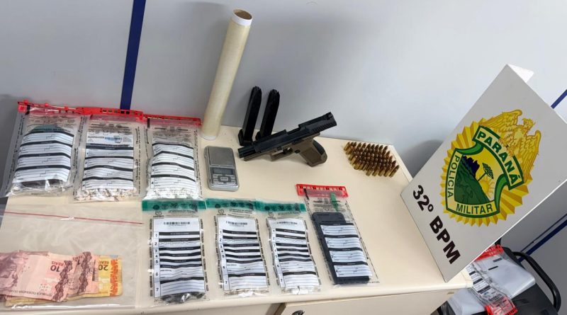 A Polícia Militar apreendeu um homem de 32 anos por tráfico de drogas e posse de arma de fogo na tarde desta sexta-feira (6), em Marialva.