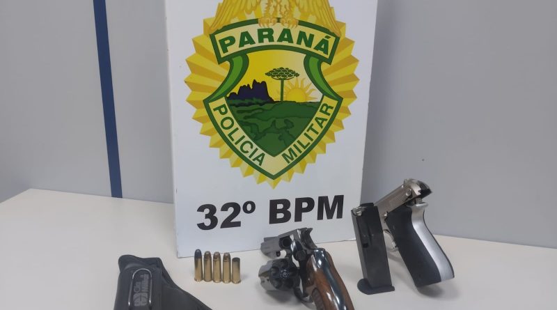 Suspeito foi localizado pela Polícia Militar com duas armas e munições após denúncia de ameaça