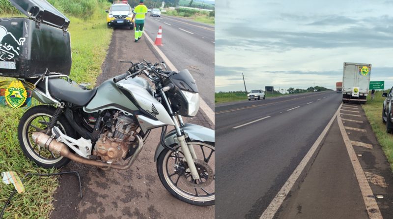 Na tarde de quinta-feira (17), por volta das 16h30, um acidente foi registrado no KM 5 da PR-444, no município de Arapongas. O fato envolveu uma motocicleta Honda CG 160 FAN e um caminhão VW 14.150, ambos com placas de Arapongas.