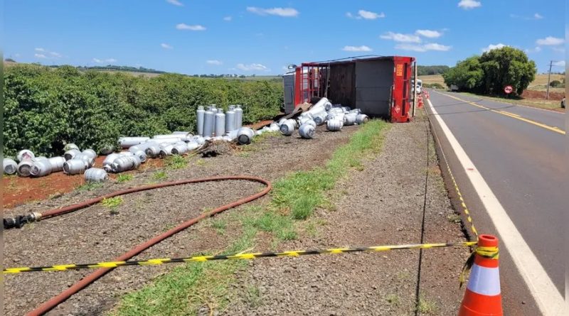 Uma carreta carregada com botijões de gás tombou na manhã desta terça-feira (14) na PR-170, trecho entre o distrito do Pirapó e o município de Arapongas. O acidente mobilizou equipes do Corpo de Bombeiros, que precisaram agir rapidamente devido ao risco de vazamento da carga.